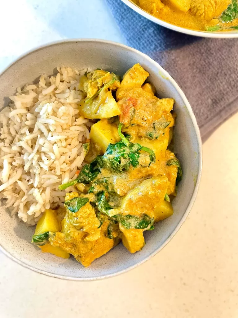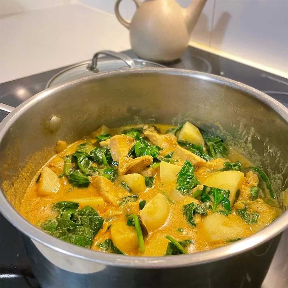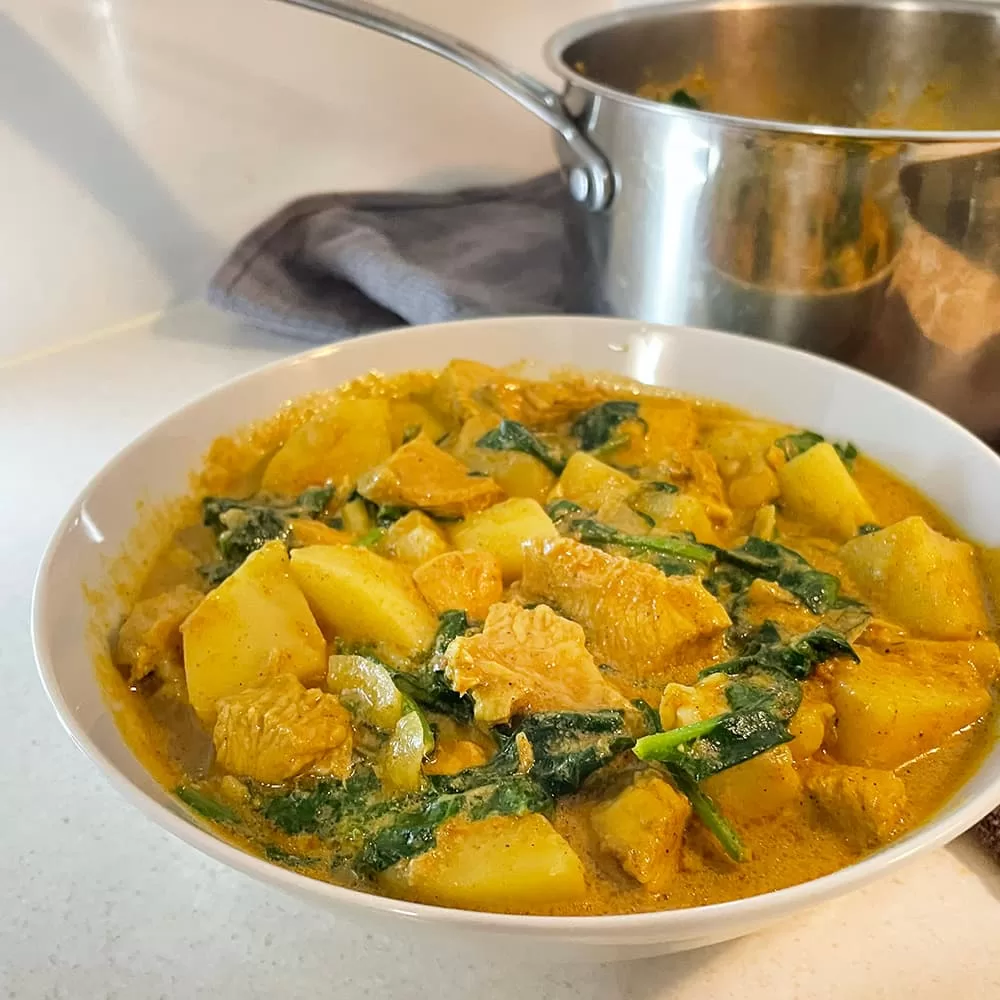 Are you a busy individual looking for a healthy and easy weeknight dinner? Try this chicken, potato and spinach healthy one-pot meal — it’s wholesome, simple to prepare, and perfect for those evenings when you want minimal cleanup. Everything cooks in one pot, making it super convenient, yet the flavors are absolutely satisfying. My kids love this curry because it’s packed with flavor and tender, juicy chicken. The chicken turns out so soft and fresh, it practically melts in your mouth!